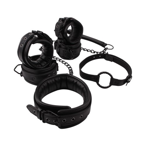 Набор БДСМ из 4 предметов: наручники, наножники, ошейник с поводком, и кляп (открытый ротик).