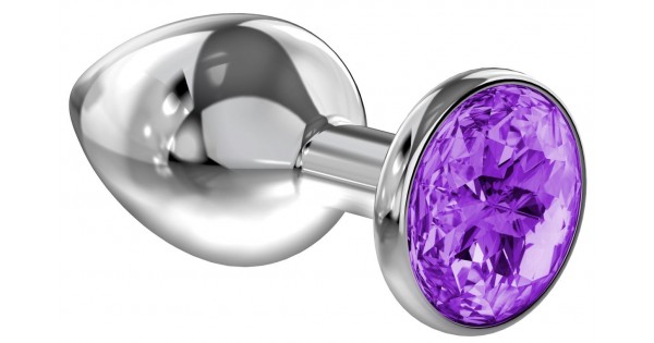 Малая серебристая анальная пробка Diamond Purple Sparkle Small с фиолетовым кристаллом - 7 см.