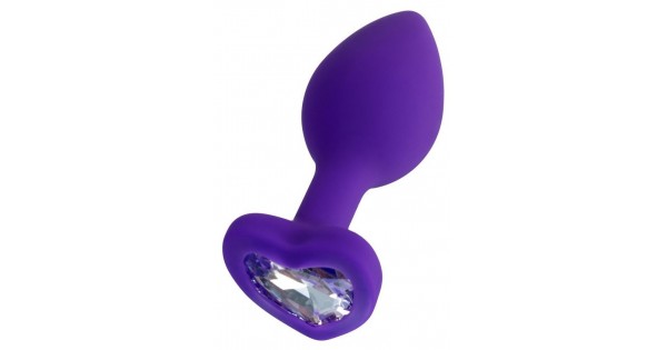 Фиолетовая силиконовая анальная пробка с черным стразом-сердцем - 8 см.
