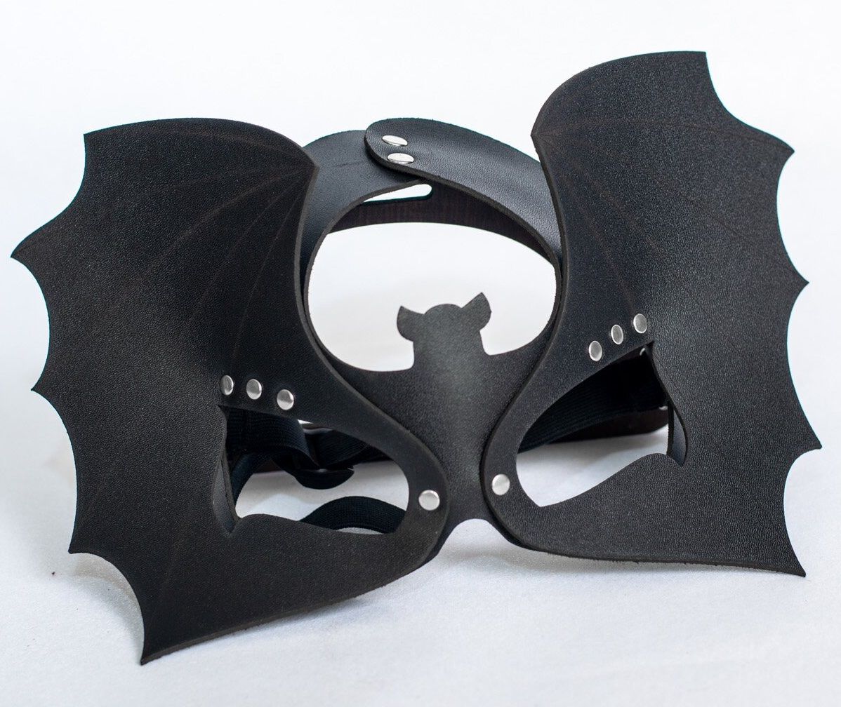 Маска на глаза "Летучая мышь" из черной и красной лаковой кожи