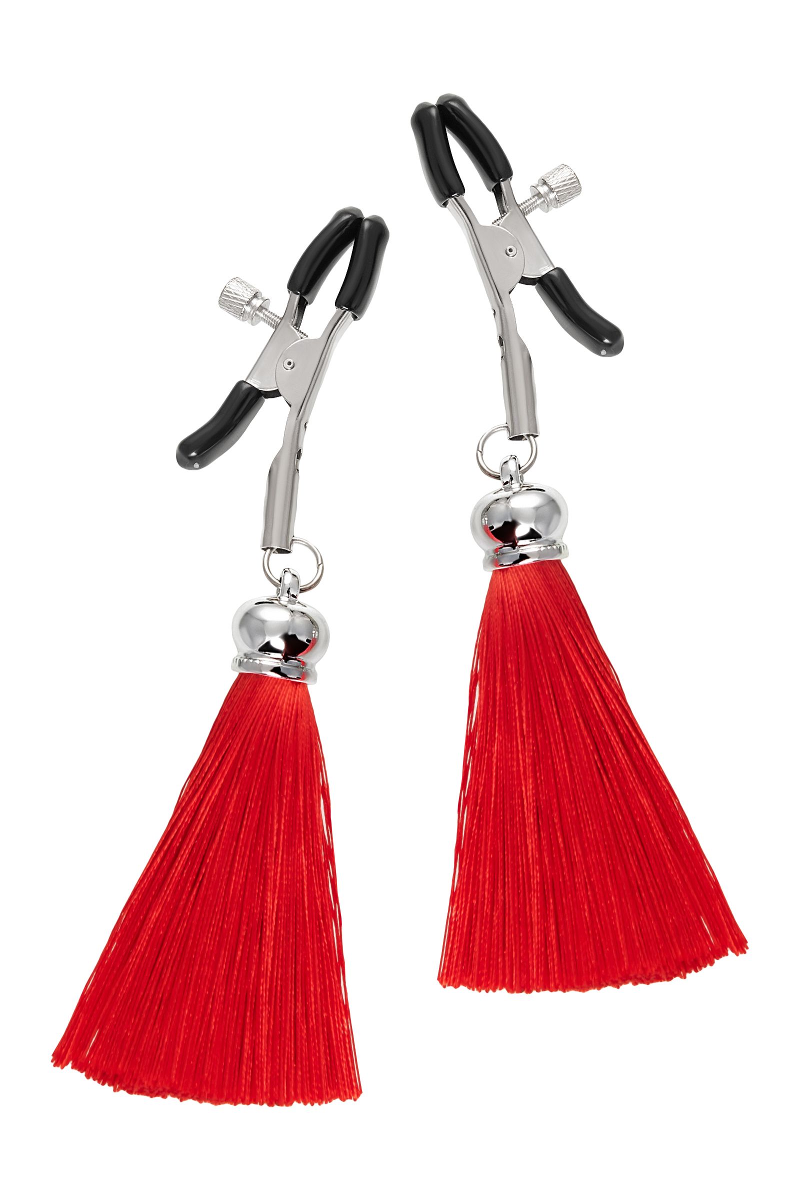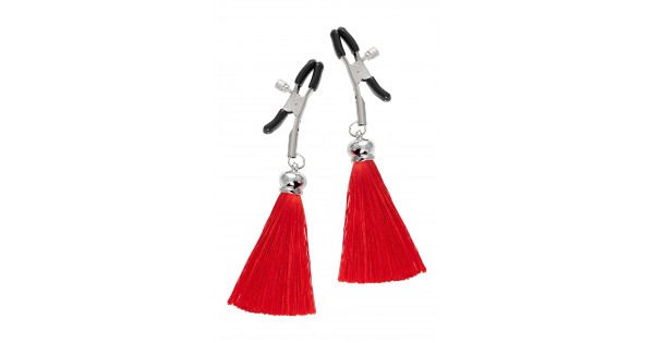 Зажимы на соски «Прищепки» с красными кисточками из шелка