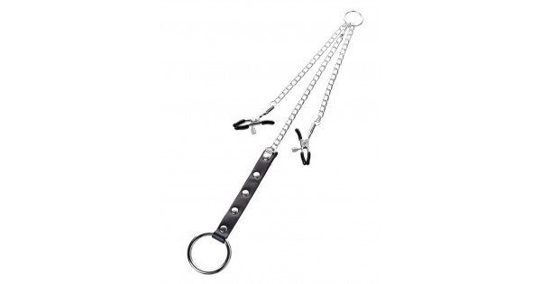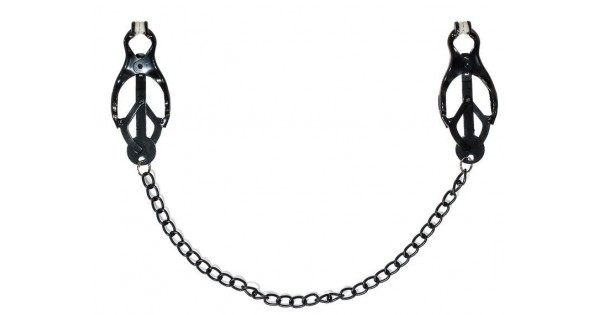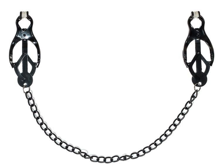 Серебристо-чёрные зажимы для сосков с кольцом для пениса TOYFA Metal