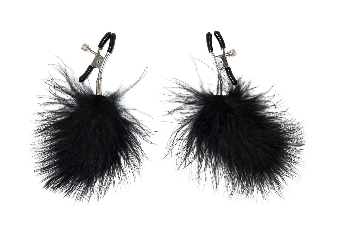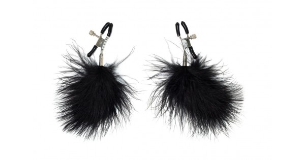 Зажимы на соски с черным пухом Euphoric