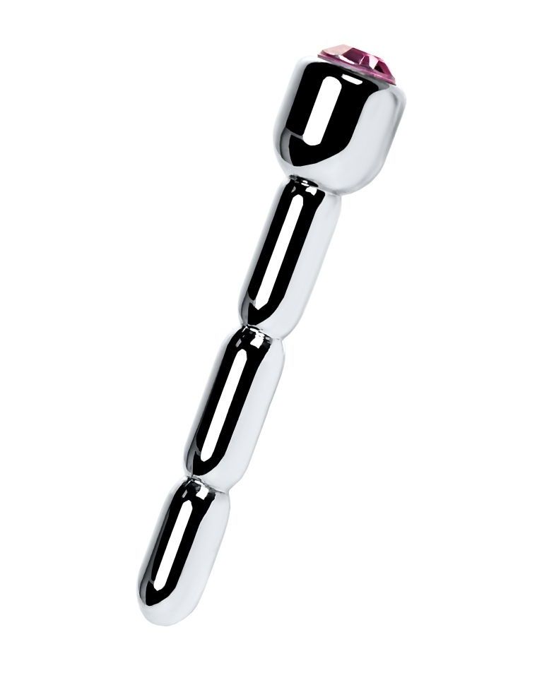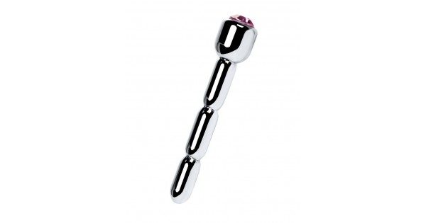 Серебристый уретральный плаг с красным кристаллом - 11,3 см.
