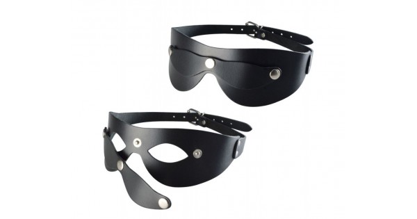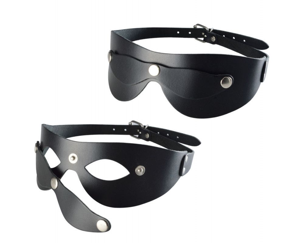 Черная кожаная маска на глаза со съемной шторкой
