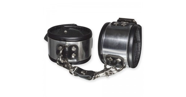 Эффектные серебристо-черные наручники с металлическим блеском