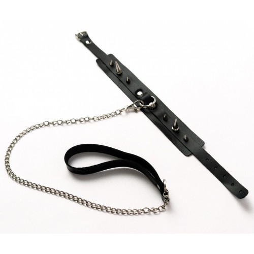 Ошейник имеет декоративную вставку с кольцом для крепления металлического поводка с удобной ручкой. Выполнен из натуральной кожи.