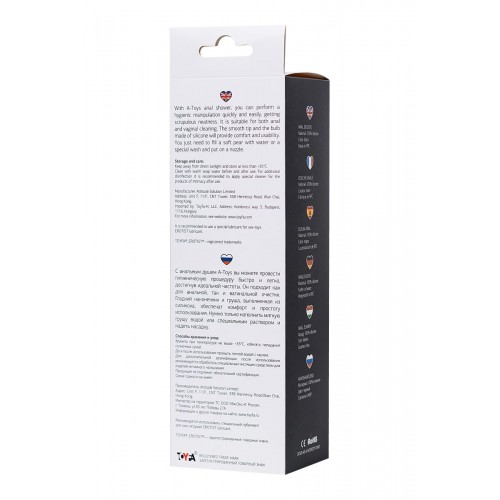 С анальным душем A-Toys вы можете провести гигиеническую процедуру быстро и легко, достигнув идеальной чистоты. Он подходит как для анальной, так и вагинальной очистки. Гладкий наконечник и груша, выполненная из силикона, обеспечат комфорт и простоту использования. Нужно только наполнить мягкую грушу водой или специальным раствором и надеть насадку. Минимальный диаметр - 1,4 см.