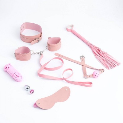Этот набор сделает вашу интимную жизнь более яркой и насыщенной. Чувственное перевоплощение, легкий БДСМ и взрывные оргазмы помогут обрести сексуальную гармонию. Маска на глаза поможет усилить ощущения. Нежное похлопывание или чувствительное наказание - какой бы сценарий интимной игры вы не выбрали, плеть из тонких полос кожи создаст нужную атмосферу в спальне. С анальной пробкой вечер будет жарким! Оно за считанные минуты создаст нужный настрой у вашего партнера, а наручники обездвижут партнера. В комплекте: ошейник, наручники, поводок, маска на глаза, анальная пробка, кляп-шарик, плеть, веревка.
