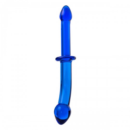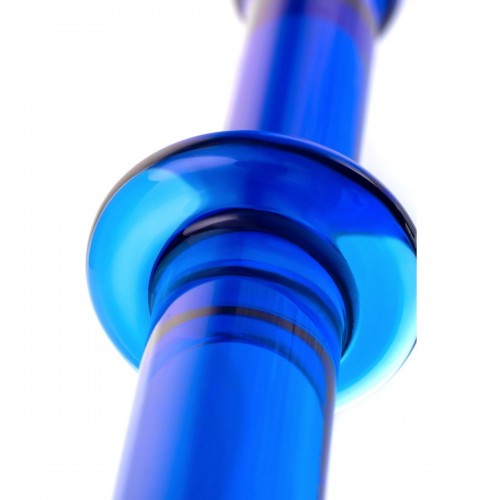 Анальный стимулятор из стекла небесно синего цвета. Популярная модель стеклянных игрушек - двойной фаллос с ограничительным основанием по середине. Одна половинка - небольшой фаллос с заостренной головкой, другая сторона-фаллос большего размера и диаметра. Изделие удобно держать и использовать, благодаря хорошему скольжению. Минимальный диаметр - 2,5 см.