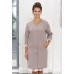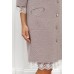 Женский стеганый халат на пуговицах. По бокам кармашки. Средняя длина, рукав ¾. Низ халата и рукавов украшены кружевом.