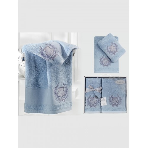 Комплект полотенец DAVIS изготавливают из высококачественных хлопковых нитей. Достоинства данной модели махровых полотенец можно перечислять бесконечно, но мы выделим самые основные: • натуральный, гипоаллергенный состав • отличается мягкостью и износостойкостью • полотенца не выцветают и не линяют • простота ухода за изделием, не требует глажки • высокая гигроскопичность и износостойкость. Комплект состоит из 2 полотенец (50х90 и 70х140), украшенных оригинальной вышивкой и упакованных в красивую подарочную коробку.