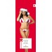 Комплект бикини Деда Мороза из мягкого слегка блестящего бархата. Края бюстгальтера и стрингов обшиты белым пухом и украшены красными бантиками. Идеальная идея в качестве удачного праздничного подарка. В комплекте шапочка Деда Мороза (сшита из сеточки).