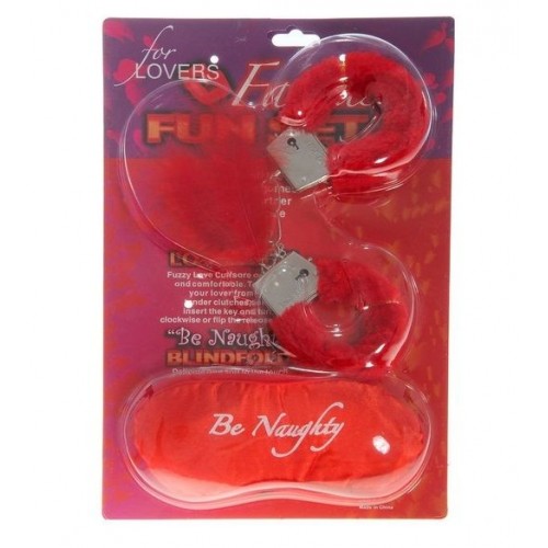 Набор для влюблённых: наручники, повязка, перо.