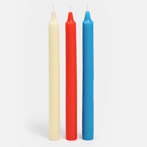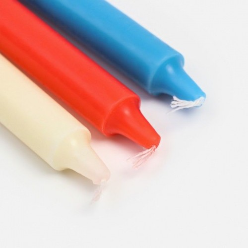 Набор низкотемпературных свечей для БДСМ-игр. Температура воска при плавлении составляет 50 градусов по Цельсию. В набор входят 3 разноцветные свечи. Длина каждой свечи - 19 см., диаметр - 1,5 см.
