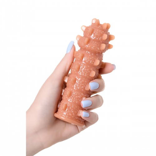 Увеличивающая насадка с впечатляющей дополнительной стимуляцией решает сразу 3 задачи: дарит удовольствие обоим партнерам, позволяет экспериментировать с секс-игрушками и выводит интимную жизнь на более высокий уровень Желанное разнообразие. Насадка придает члену внушительный объем и новую форму, поэтому как нельзя лучше подходит для сценариев - секс с незнакомцем. При этом выразительный рельеф с выпуклыми точками и шипами привносит незабываемый эффект новизны в ощущения партнерши. Зашкаливающее удовольствие для двоих. В то время как женщина испытывает потрясающее чувство наполненности и получает интенсивную стимуляцию стенок влагалища, мужчина наслаждается более продолжительным половым актом и возбуждающими оргазмами партнерши. Яркие эксперименты. Киберкожа прекрасно передает всю мощность вибраций, поэтому насадку можно использовать не только с партнером, но и с любимым вибратором. Вы также оцените , как насадка превосходно тянется и легко надевается на член, обеспечивая при этом плотное и комфортное прилегание, как быстро принимает температуру тела и насколько она приятна на ощупь.