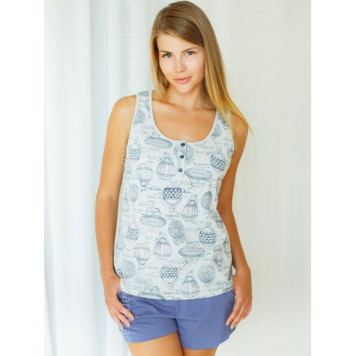 Женская пижама: шорты с кармашками и майка на широких бретелях.