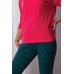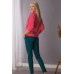 Хлопковый женский комплект LNS 708 от европейского производителя KEY. Изделие приталенного кроя. Узорные брюки слегка укорочены, на резинке и с карманами с отрезным бочком. Кофта с принтом.