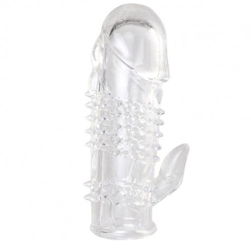 Хоть наденет эту прозрачную насадку мужчина, сексуальное удовольствие получит женщина. Ведь именно она сможет наслаждаться с виду колючими, но очень мяконькими шипами, опоясывающими ствол пениса. А также небольшим отростком, обеспечивающим массаж клитора при каждом толчке.