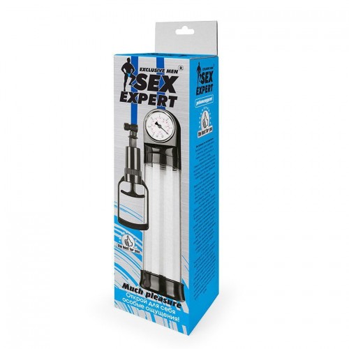 Вакуумная помпа Sex Expert даёт потрясающий эффект:- ускоряет кровообращение, обеспечивая прилив крови к половому члену,- повышает тонус мышц и эластичность тканей пениса, способствуя увеличению его размеров, дарит великолепную эрекцию, придаёт уверенности в себе, расширяет сексуальные возможности. Для достижения наилучшего результата рекомендуется время от времени менять уровень давления и чередовать применение интимного аксессуара с ручным массажем. Манометр, показывающий уровень давления в колбе и прочная пластиковая колба с разделительной шкалой, помогают отслеживать изменения длины полового члена, а специальная насадка-уплотнитель, позволяющая плотно прижимать помпу к телу, который создаёт сильный вакуумный эффект внутри колбы.