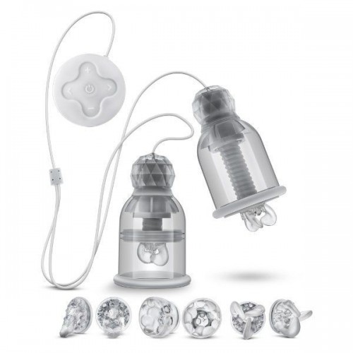 Прозрачные вибронасадки на соски со сменными колпачками Titillator. Можно менять колпачки - 3 вида в комплекте: язычки, шишечки и клешни. Управление вибрацией происходит при помощи проводного пульта. Длина цилиндров - 10,8х5,7 см.