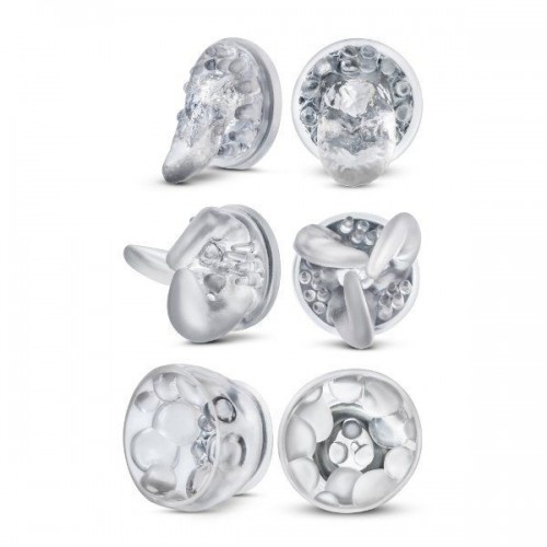 Прозрачные вибронасадки на соски со сменными колпачками Titillator. Можно менять колпачки - 3 вида в комплекте: язычки, шишечки и клешни. Управление вибрацией происходит при помощи проводного пульта. Длина цилиндров - 10...