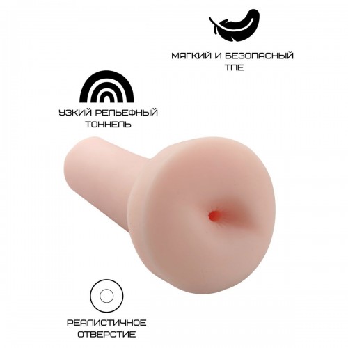 Реалистичный мастурбатор-анус выполнен из мягкого пористого ТПЕ и максимально точно передает ощущение прикосновения к коже, а также эмоции как от полноценного полового акта. ТПЕ безопасен для кожи и не содержит фталаты. Подойдет для любого размера. Перед применением рекомендуется добавить лубрикант. Узкий рельефный тоннель мастурбатора имеет ребристую текстуру.