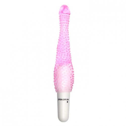 Анальный вибратор неправильной формы, покрытый пупырышками. Виброэлемент находится в основании и управляется поворотом ручки....