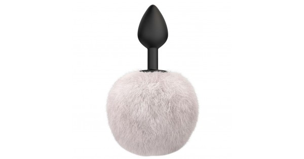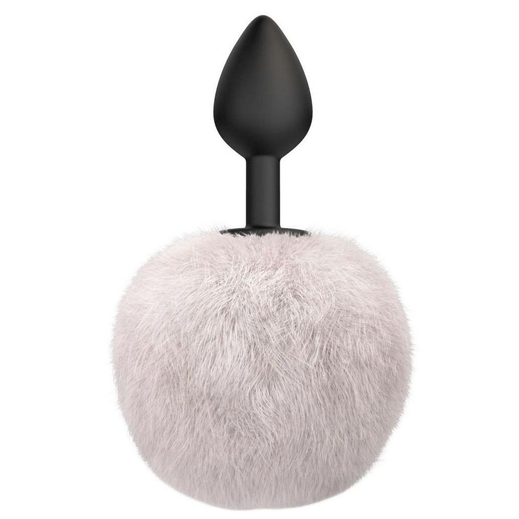 Черная анальная пробка с белым пушистым хвостиком Fluffy