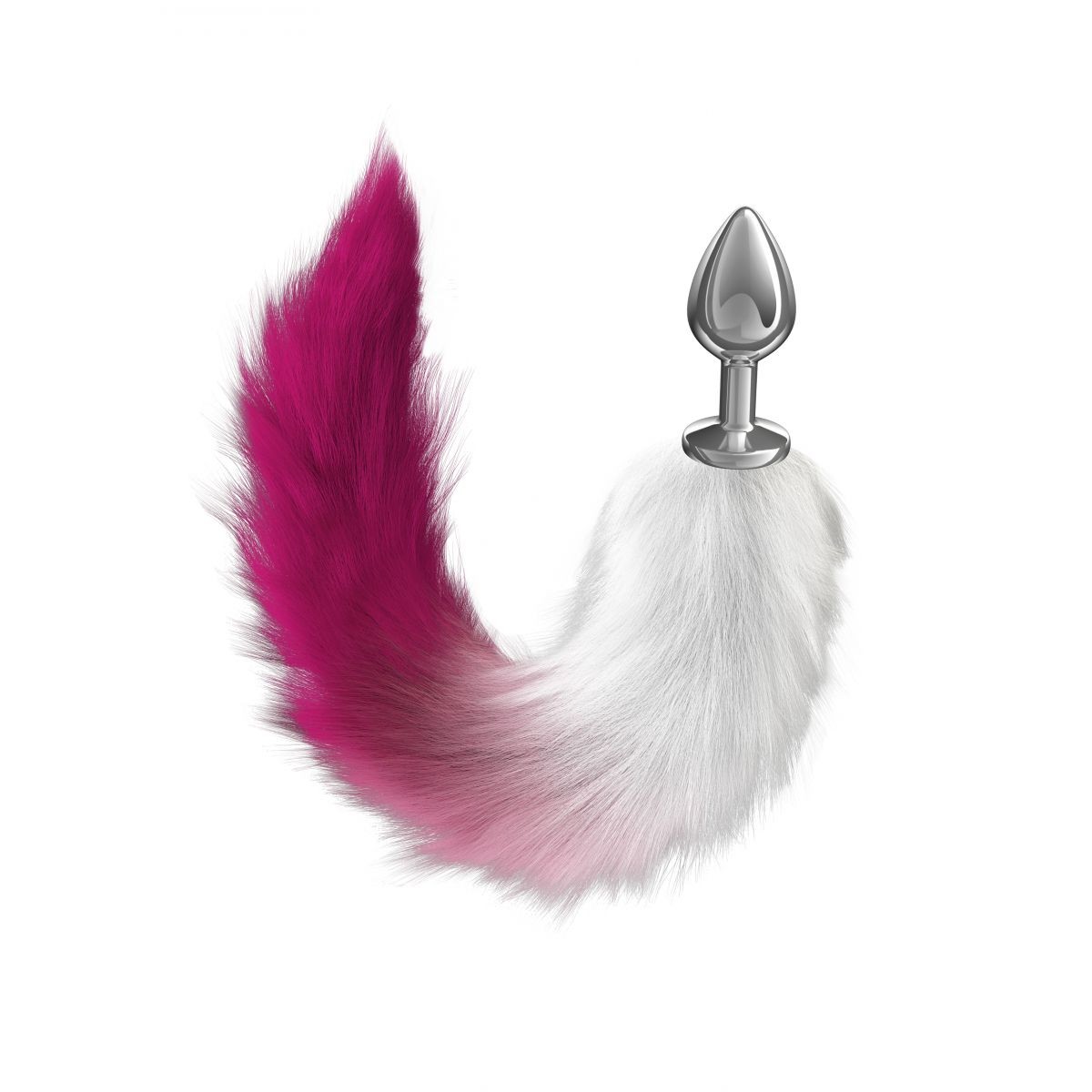 Серебристая анальная пробка с розовым хвостом Galaxy