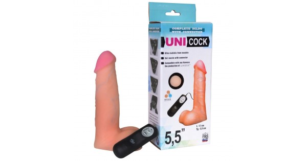 Фаллическая насадка Харнесс UNICOCK 5,5" с вибрацией - 17 см.