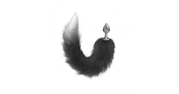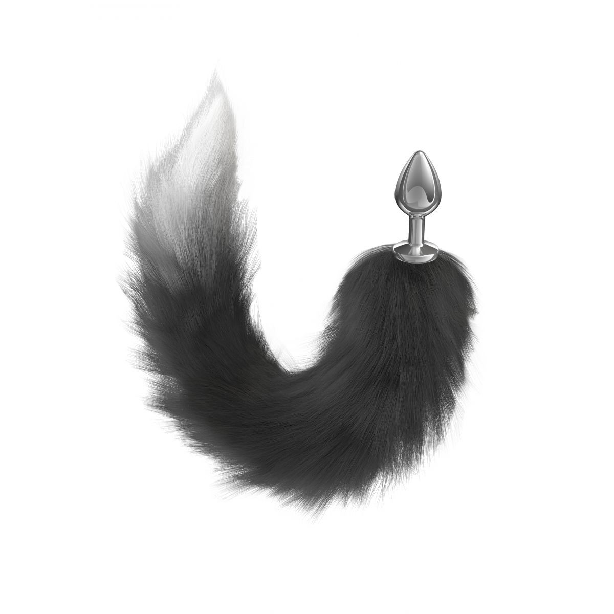 Черная силиконовая анальная втулка с хвостом чернобурой лисы - размер S