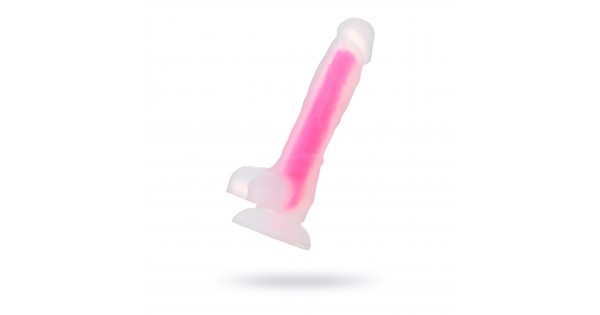 Прозрачно-розовый, светящийся в темноте фаллоимитатор - 18,5 см.