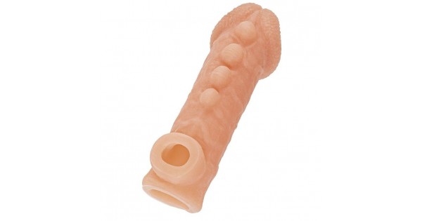 Телесная закрытая насадка с пучками шишечек Cock Sleeve Size M - 15,6 см.