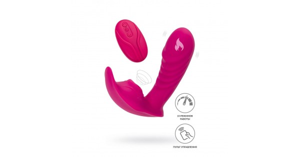 Ярко-розовый вибратор Alexios с клиторальной бабочкой - 21 см.
