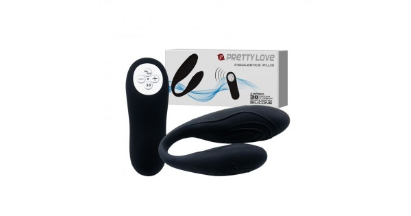Чёрный вибромассажер для пар Indulgence Plus с ДУ