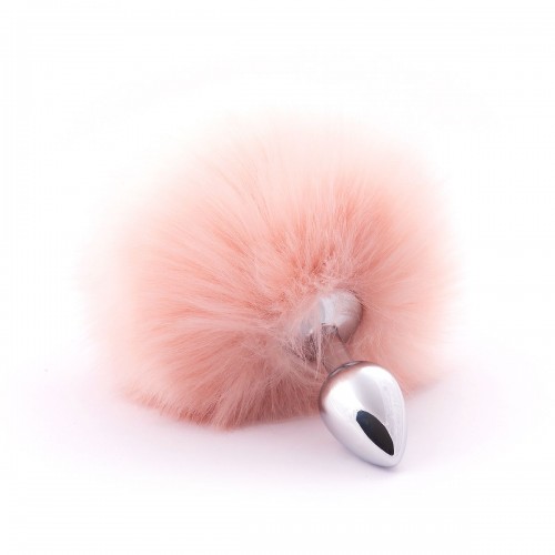 Серебристая анальная пробка с бежевым хвостиком. Искусственный эко-мех. Диаметр хвоста — 15 см....