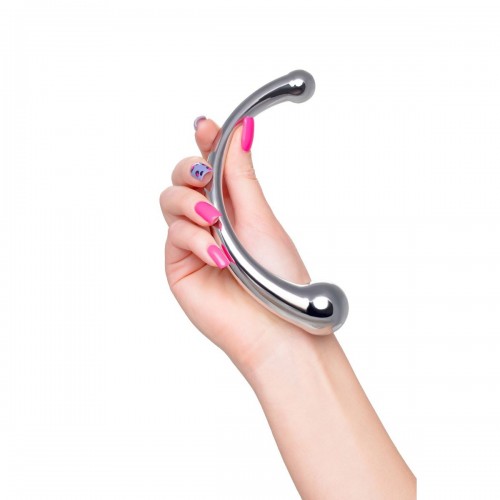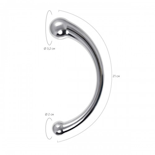 Металлический фаллоимитатор изогнутой формы с ярко выраженной головкой с обоих концов позволит испытать новые ощущения от чувственных экспериментов. Металл – один из самых безопасных и экологичных материалов, он прост в уходе, дружит со всеми видами смазок, а кроме того отлично поддается играм с температурами: для получения новых ощущений нагревайте или охлаждайте фаллоимитатор. Гладкость металла и плавность форм делают проникновение максимально комфортным. Приятная тяжесть добавит изюминку в сексуальную игру, что позволит получить еще больше наслаждения. Изогнутая форма удобно ложится в ладонь и вписывается как в сексуальную соло-игру, так и в парную. Диаметр меньшей головки - 2 см.