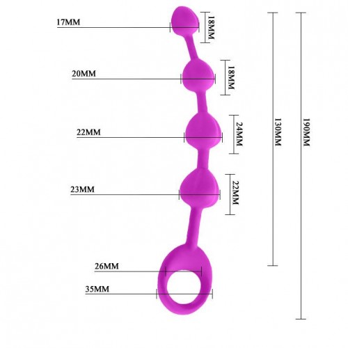 Изысканная силиконовая цепочка поможет разнообразить сексуальный мир, а Вы познаете новые ощущения. Интим-игрушка выполнена в ярких тонах из нежного силикона, ее удивительная гибкость поможет лучше узнать загадки своего тела. Силиконовая цепочка состоит из бусин разных размеров, что позволяет безболезненно проникать в область ануса. В ее основании находится удобное колечко, с помощью которого можно контролировать глубину проникновения игрушки. Минимальный диаметр звена - 1,7 см. Рабочая длина - 13 см.