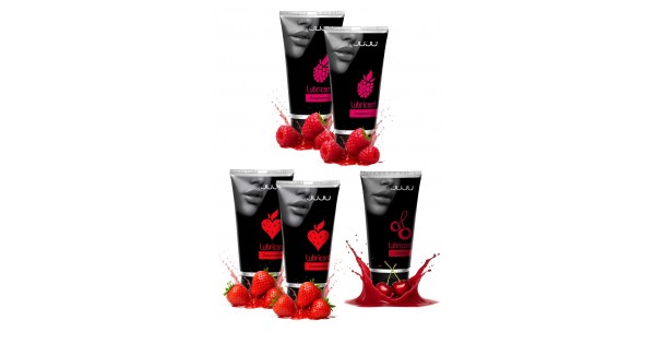 Набор из 5 съедобных лубрикантов JUJU (клубника х 2, малина х 2, вишня)