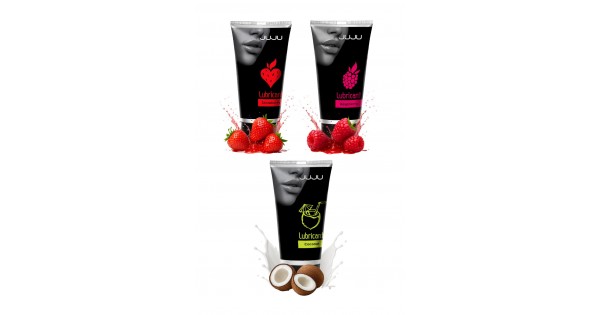 Набор из 3 съедобных лубрикантов JUJU (клубника, малина, тропические фрукты)
