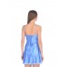 Женская короткая сорочка из шелка, полуприлегающего силуэта, расширенная книзу, на тонких регулируемых бретелях, вырез декольте и низ изделия декорированы узкой кружевной лентой, на левом бедре расположена декоративная вставка из кружевного полотна, верх украшен бантиками из узкого кружева.