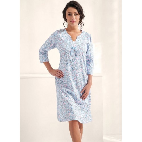 Женская сорочка с рукавом 3/4 и фигурным вырезом горловины. Декорирована бантиком.