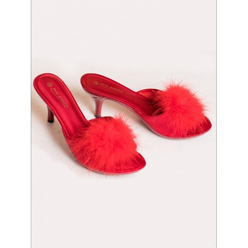 Изящные домашние туфли на небольшом каблуке 7см, с отделкой перьями марабу.