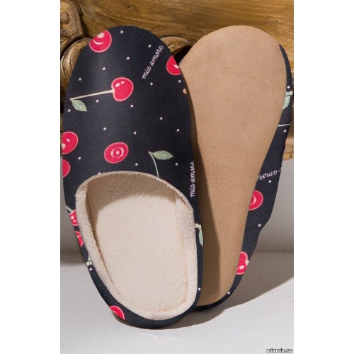 Идеальное дополнение к изделиям коллекции милые тапочки Mia-Amore с изображением вишенок. Тапочки мягкие и теплые с флисовой подкладкой, идеально подойдут на межсезонье.