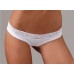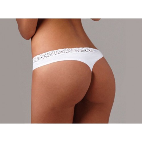Женские трусы-стринг из гладкой ткани с кружевной вставкой в верхней части. Заниженная посадка и узкий бок. Выполнены из натурального х/б трикотажа с эластичными добавками.