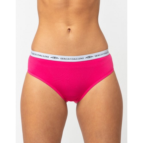 Эффектные трусики-слип в спортивном стиле. Выполнены из хлопка с добавлением эластичных нитей, что обеспечивает исключительную мягкость и терморегуляцию. Широкая нарядная резинка с фирменным логотипом надежно фиксирует трусики на бедрах и безусловно служит украшением этой модели.