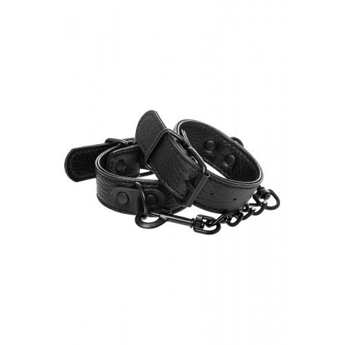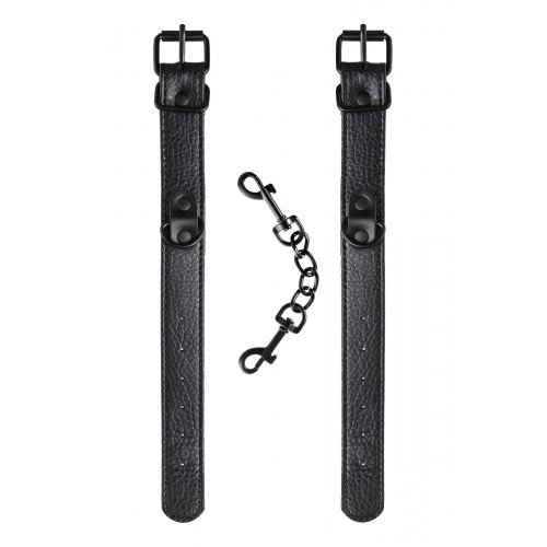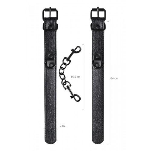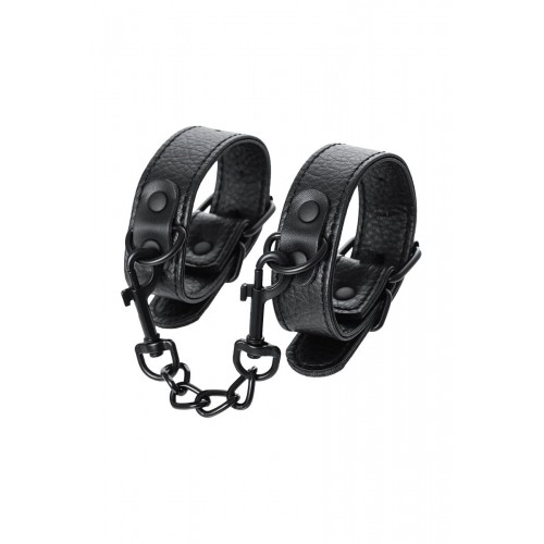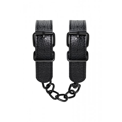 Эти аккуратные наручники из черной PU-кожи с черной же цепочкой-сцепкой нельзя назвать просто ограничителями свободы. Вся металлическая фурнитура выдержана в стиле строгого подчинения, не отвлекая внимание от игрового процесса. Они станут для вас стильным аксессуаром и дополнят любой образ. Благодаря универсальным цвету и форме, они подойдет партнеру любого пола. Фиксируйте руки перед собой или за спиной, развивайте степень своего доверия к Мастеру и свои скрытые желания. Длина манжет - 26,5 см., ширина - 2,5 см. Длина сцепки - 15,5 см.